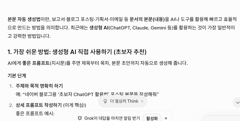 요즘 블로그를 운영하는 분들 사이에서 Grok AI는 빠르게 글 초안을 만드는 도구로 주목받고 있습니다. 특히 뉴스형 글, 정보형 글, 후기형 글처럼 구조가 있는 콘텐츠를 만들 때 매우 효율적입니다.